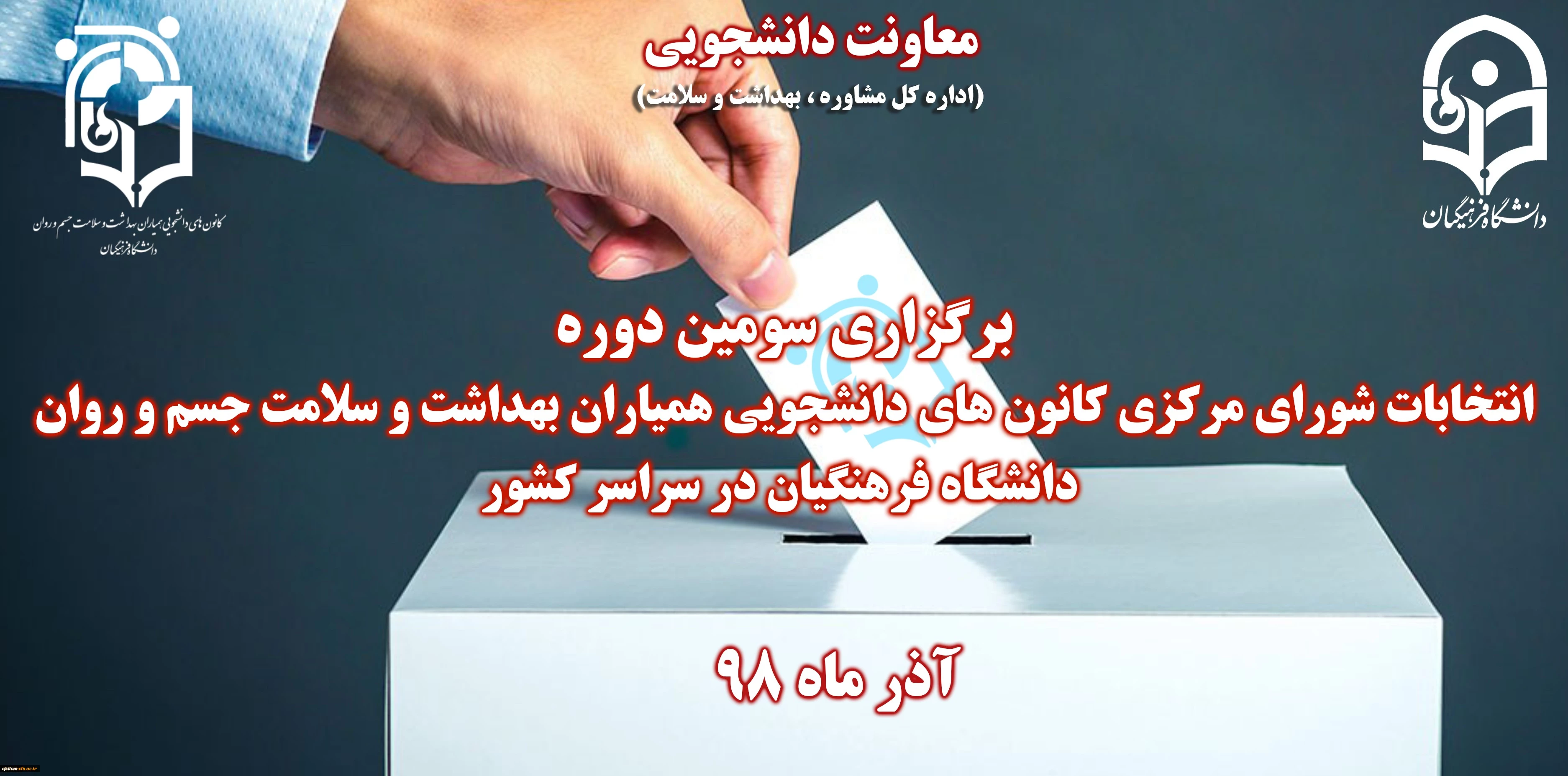 امتیاز دهید : برگزاری سومین دوره انتخابات کانون همیاران سلامت جسم و روان دوشنبه 11 آذر 1398 ساعت 13:10
