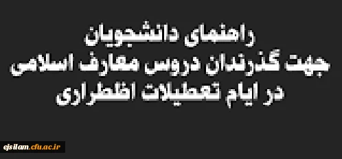 امتیاز دهید : راهنمای دانشجویان جهت گذراندن دروس معارف اسلامی در ایام تعطیلات اضطراری دوشنبه 19 اسفند 1398 ساعت 1:22