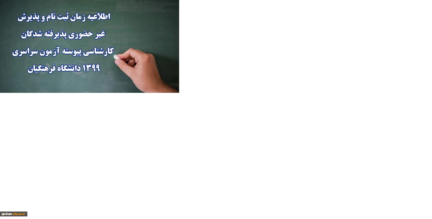 اطلاعیه زمان ثبت نام و پذیرش غیر حضوری پذیرفته شدگان کارشناسی پیوسته آزمون سراسری 1399 دانشگاه فرهنگیان
