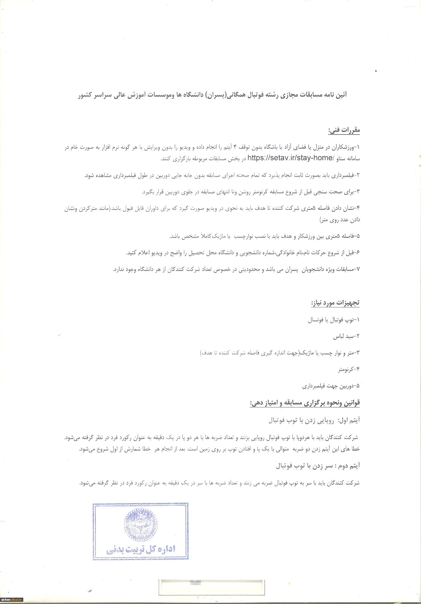 برگزاری مسابقات ورزش های همگانی مجازی دانشگاه ها و مؤسسات آموزش عالی کشور
