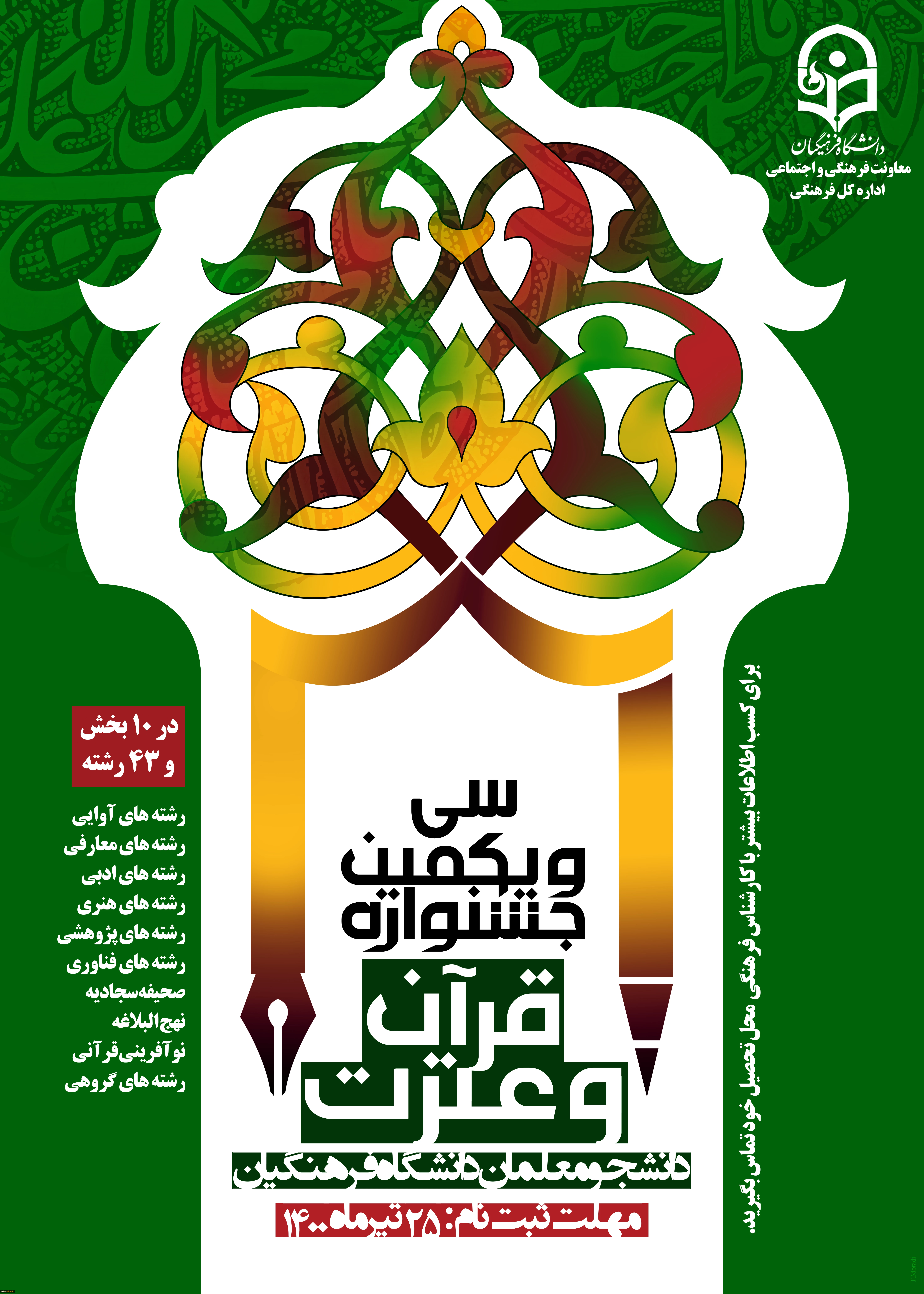 تمدید ثبت نام سی و یکمین جشنواره فرهنگی (قرآن و عترت) ویژه دانشجومعلمان دانشگاه فرهنگیان