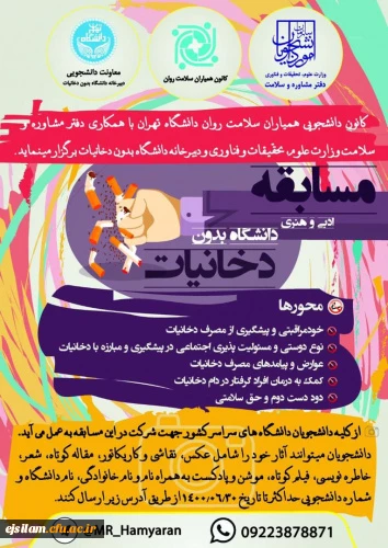 برگزاری مسابقات ادبی و هنری دانشگاه بدون دخانیات ویژه دانشجویان دانشگاه ها و مؤسسات آموزش عالی کشور