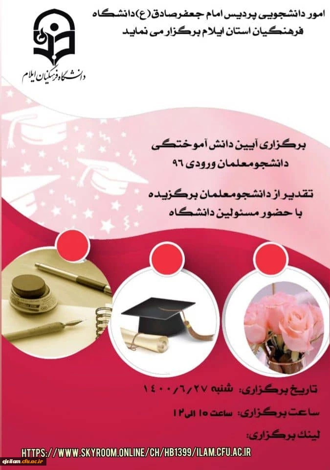 امتیاز دهید : اطلاعیه برگزاری جشن دانش آموختگی دانشجومعلمان ورودی 1396 پنجشنبه 25 شهریور 1400 ساعت 9:13