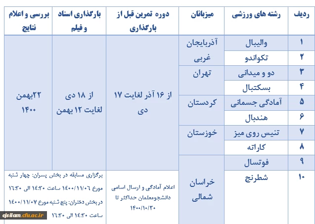 ارتباط با مدیریت پردیس های استان
