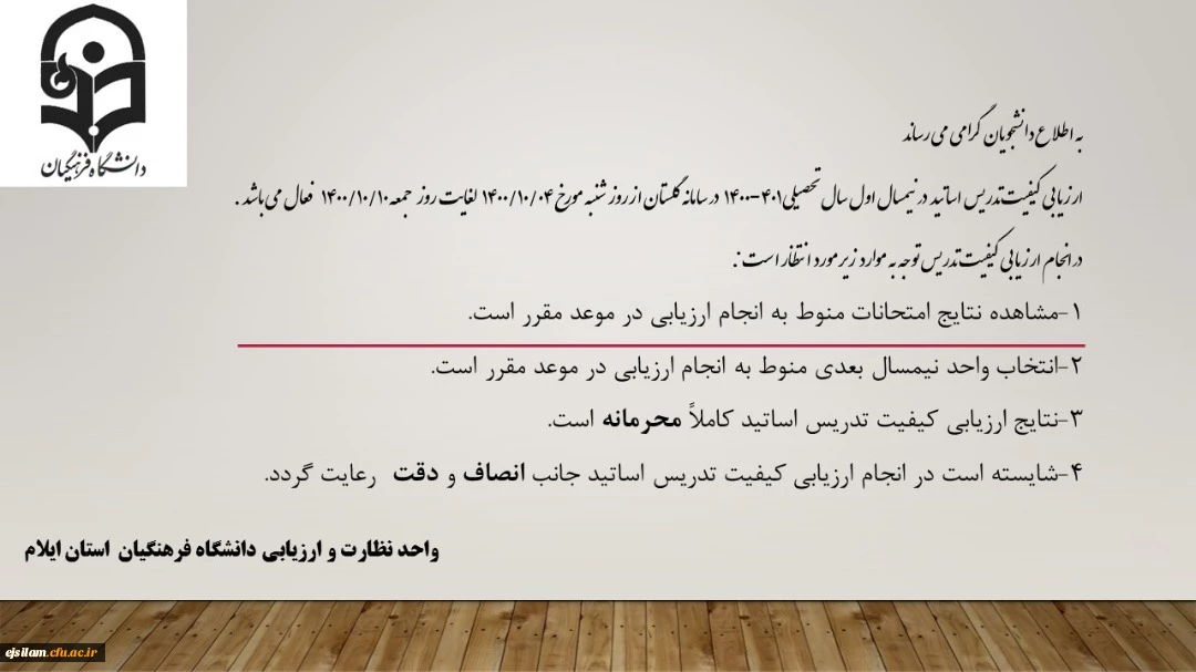 ارزشیابی اساتید نیمسال اول سال تحصیلی 1401-1400