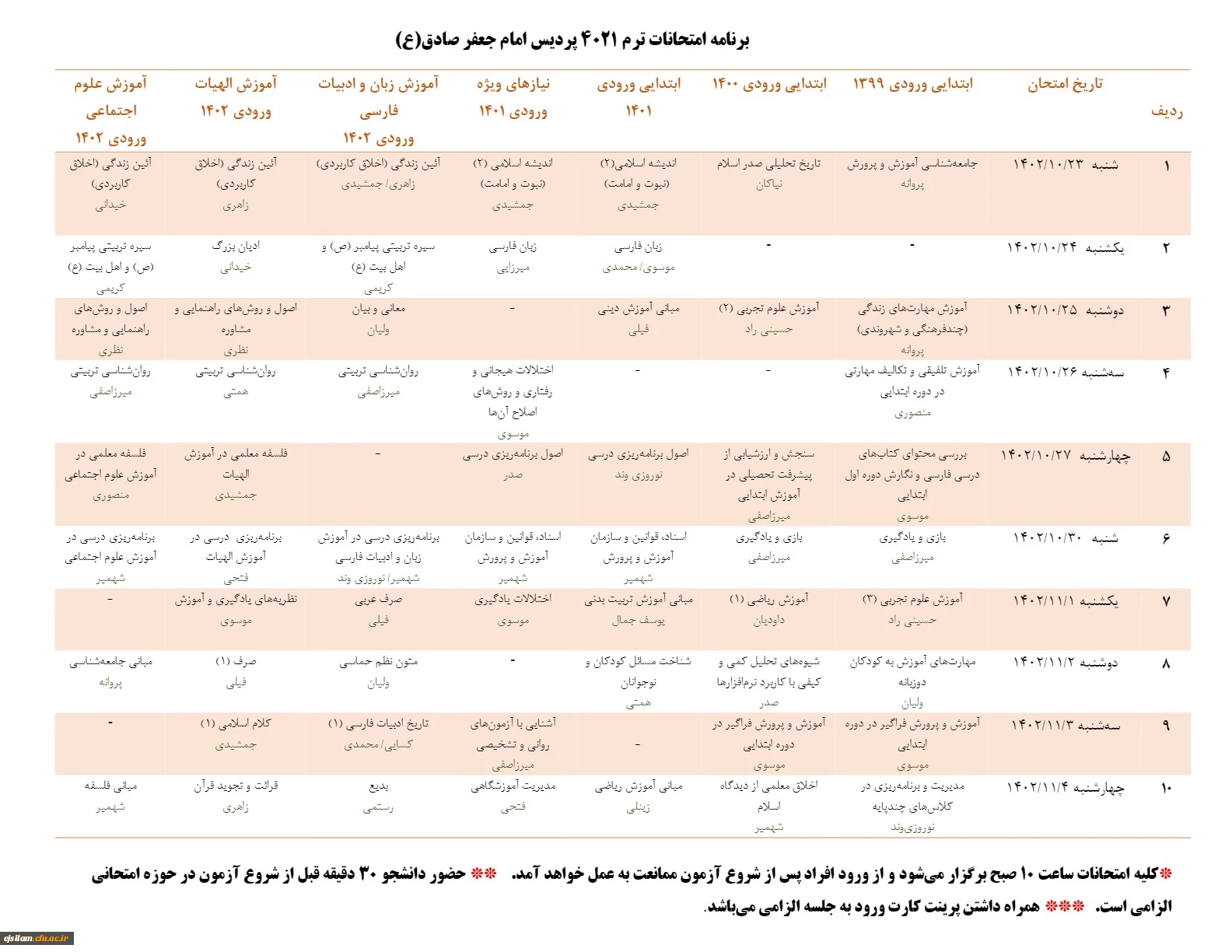 برنامه امتحانات ترم 4021
